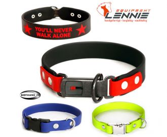 Individuell auf Maß, mit wasserfester Polsterung oder einem Aufdruck - unsere Klickverschlusshalsbänder aus BioThane® sind farbenfroh, pflegeleicht und robust.